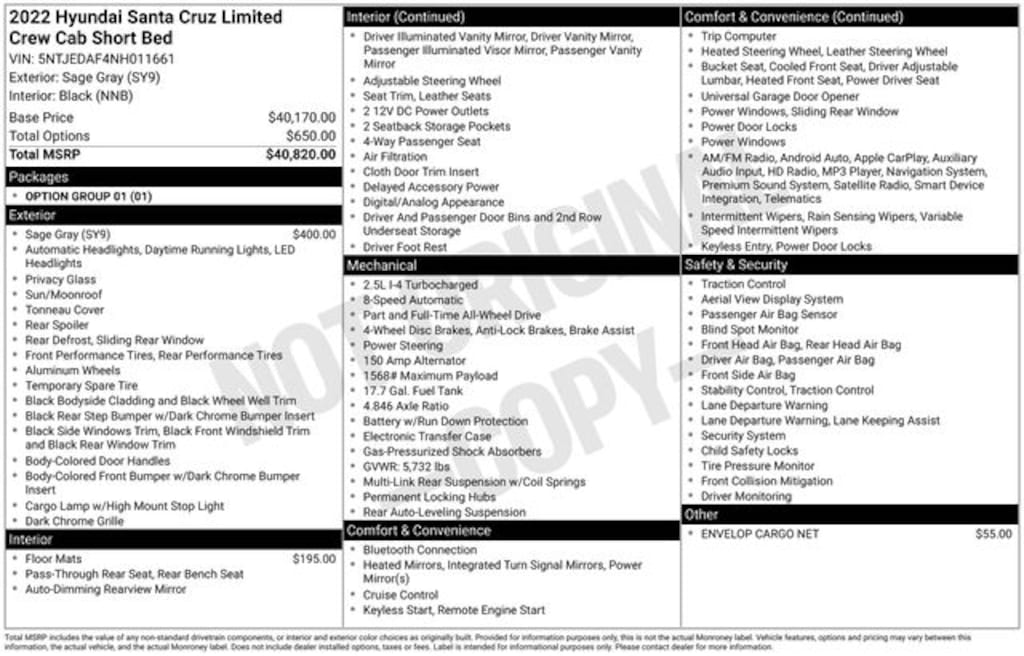 Santa Cruz Limited, 4D Crew Cab, 2.5L I4, Shiftronic, AWD, Sage Gray, Black Leather, Navigation System, Option Group 01. CARFAX One-Owner. Clean CARFAX.