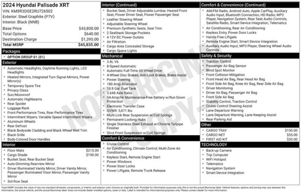 Certified. 2024 Steel Graphite 4D Sport Utility Hyundai Palisade XRT V6 AWD Navigation System, Option Group 01.