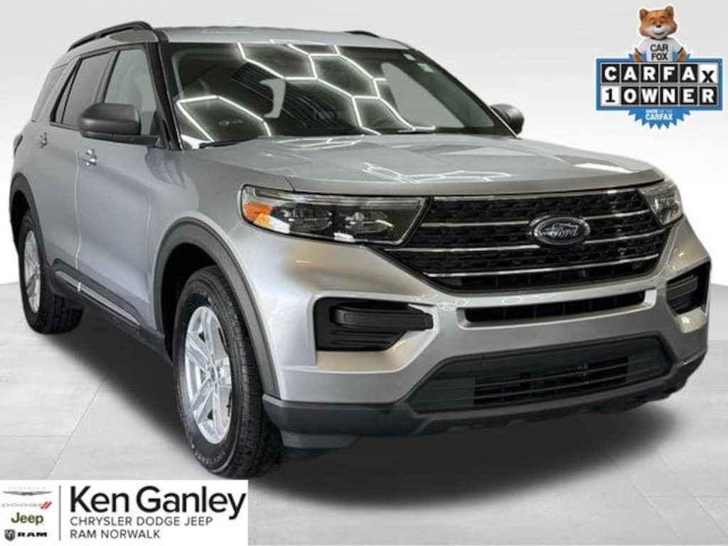 Explorer XLT, 4D Sport Utility, 2.3L EcoBoost I-4, 10-Speed Automatic, Silver, Ebony Cloth. CARFAX One-Owner. Clean CARFAX.