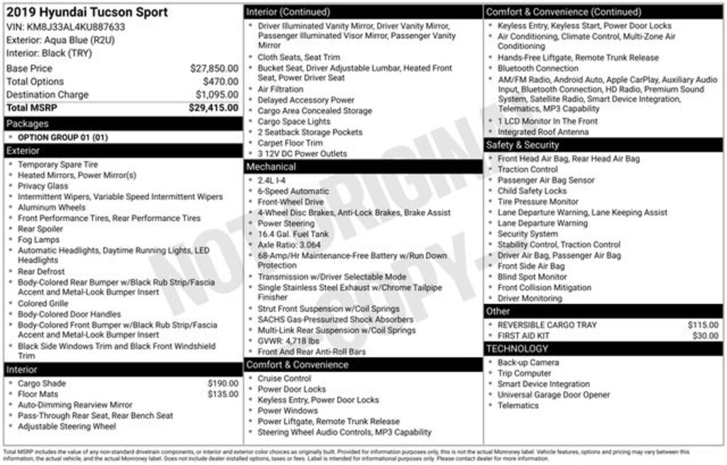 2019 Aqua Blue 4D Sport Utility Hyundai Tucson Sport 2.4L I4 DGI DOHC 16V FWD