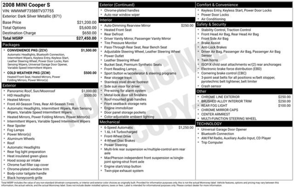 2008 Dark Silver Metallic 2D Hatchback MINI Cooper S 1.6L I4 DOHC 16V Turbocharged FWD